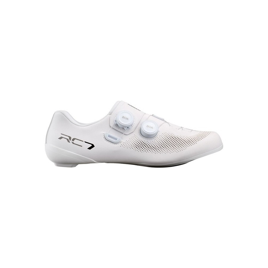 Las zapatillas de carretera Shimano RC7 (modelo SH-RC702) ofrecen un equilibrio ideal entre rigidez, ligereza y ajuste preciso para ciclistas que buscan rendimiento profesional. Su suela de carbono hueca permite una excelente transferencia de potencia y ventilación, mientras que la parte superior envolvente proporciona una sujeción segura y cómoda.